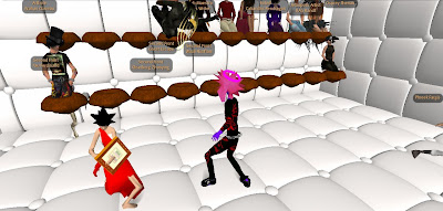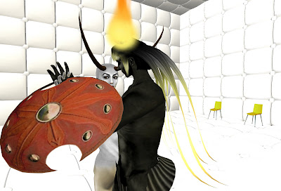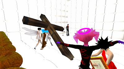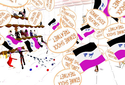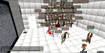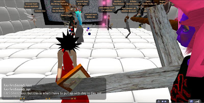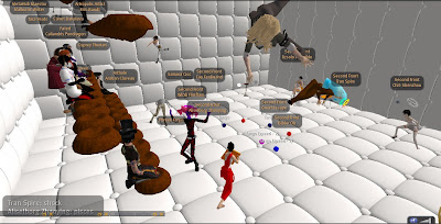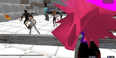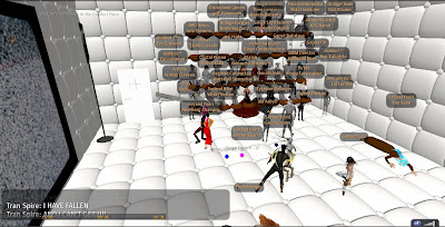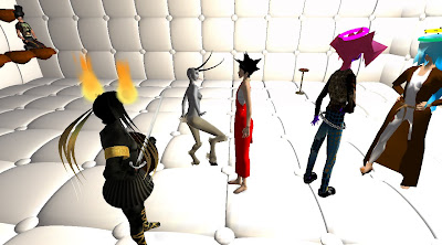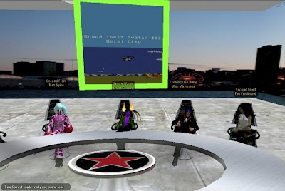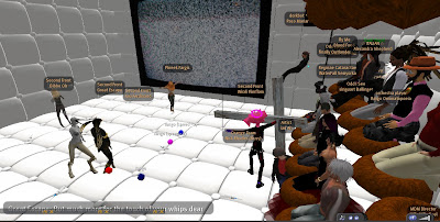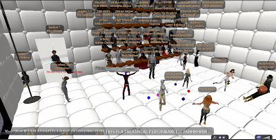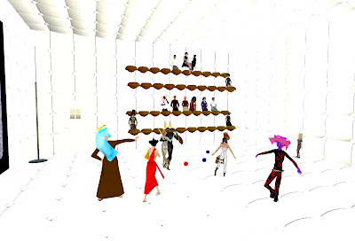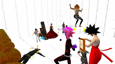 Only days after the Grand Theft Avatar performance, a freak mishap claimed the lives of SF'ers Wirxli FlimFlam and AliseIborg Zhaoying. During a rehearsal for |SL5B, a 10m anvil was accidentally dropped that was not set to "Phantom" and smashed them to bits (or bytes, or pixels). A virtual memorial was held with SF & friends in attendance, Bit from Tron, MegaByte from ReBoot, and Buzz Lightyear.